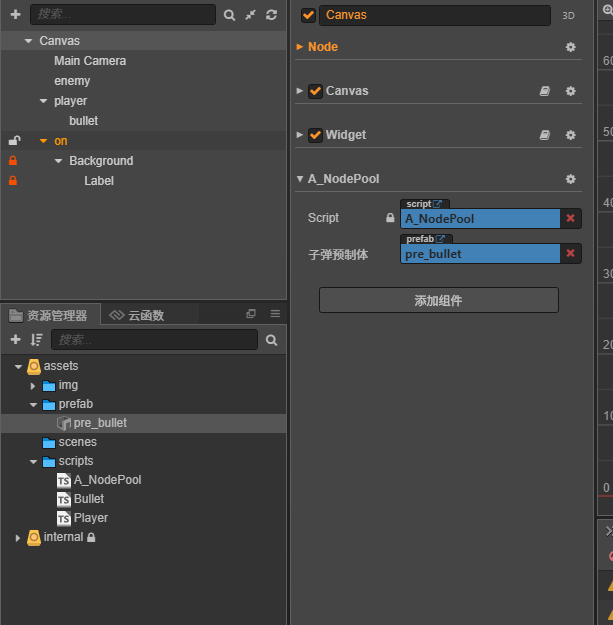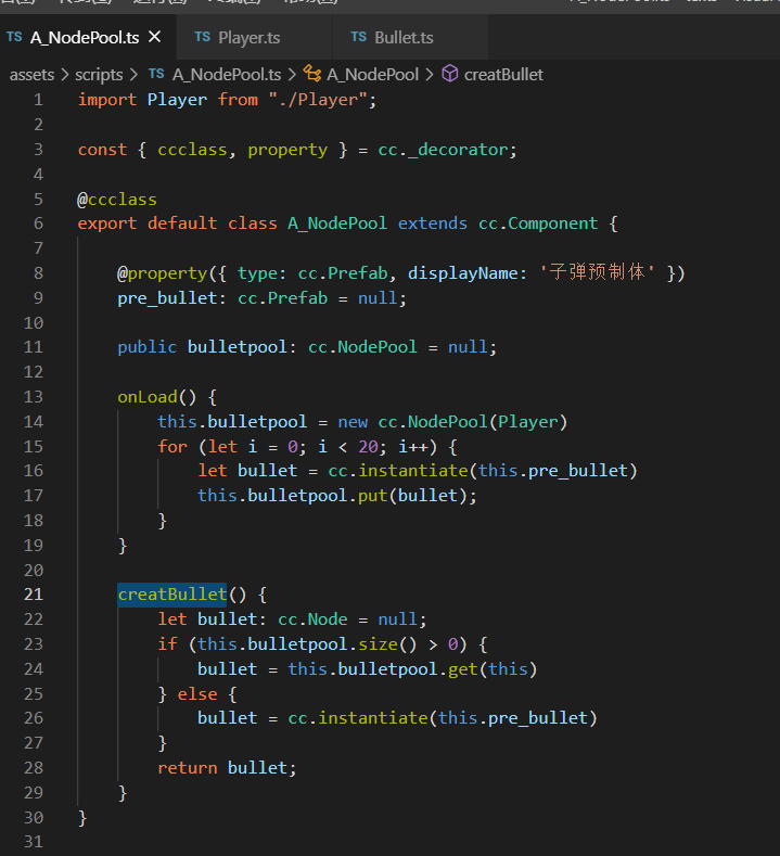 要是那么写,我在Player.ts脚本中声明一下脚本A_NodePool,比你代码量少很多