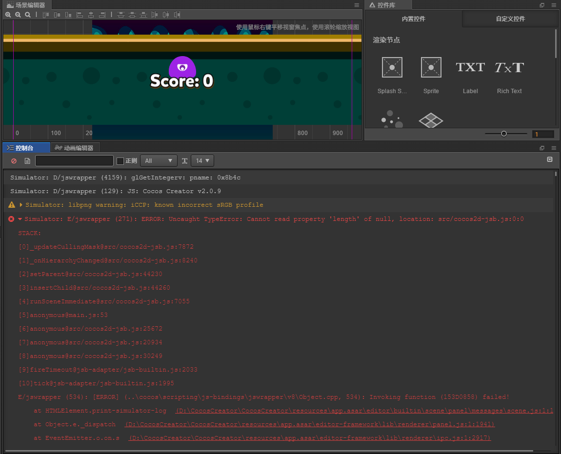 Simulator: E/jswrapper (271): ERROR: Uncaught TypeError: Cannot read property ‘length’ of null, location: src/cocos2d-jsb.js:0:0