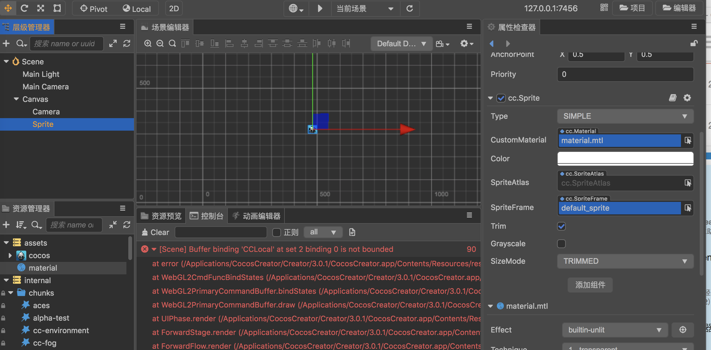 首个报错: [Scene] Buffer binding ‘CCLocal’ at set 2 binding 0 is not bounded