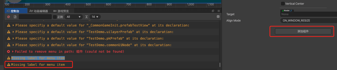 点击添加组件,显示"Missing label for menu item"