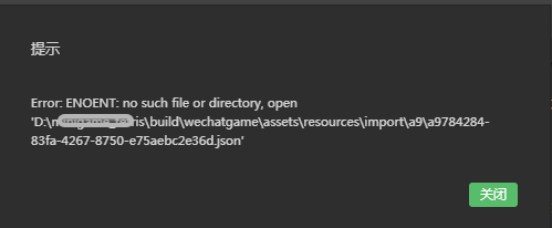 cocos creator开发的小游戏,构建发布到微信开发平台后,然后点击真机调试时,经常会报Error: ENOENT: no such file or directory,open XXXXXXXXXXXXXXXXXXx.json这样的错,报错的概率非常高,50%以上的概率会报错。