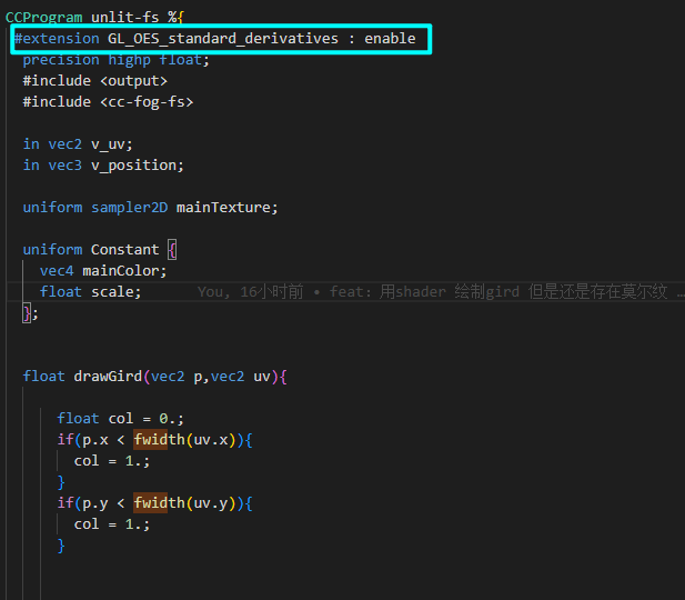 加上 #extension GL_OES_standard_derivatives : enable 就可以使用 fwidth