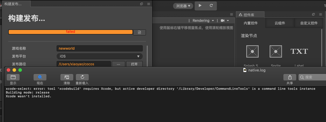 不需要其它配置,我看你的意思你是安装了command line tool和xcode,只需要xcode就好了。我怀疑你xcbuild指向了linetool的路径,你命令行跑一下xcode-select -print-path 或者直接去xcode设置默认命令行路径为xcode自带的