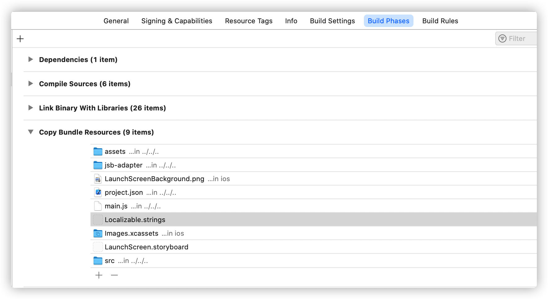 3.x 构建ios工程后,xcode中target的Build Phases里面可以看到打包的资源,发现有很对零碎的Copy Files,如果项目里面的资源多了以后,在xcode里面点击Build Phases会卡死,切换到一些其他的tab也会出现xcode卡顿问题,非常影响工作效率。