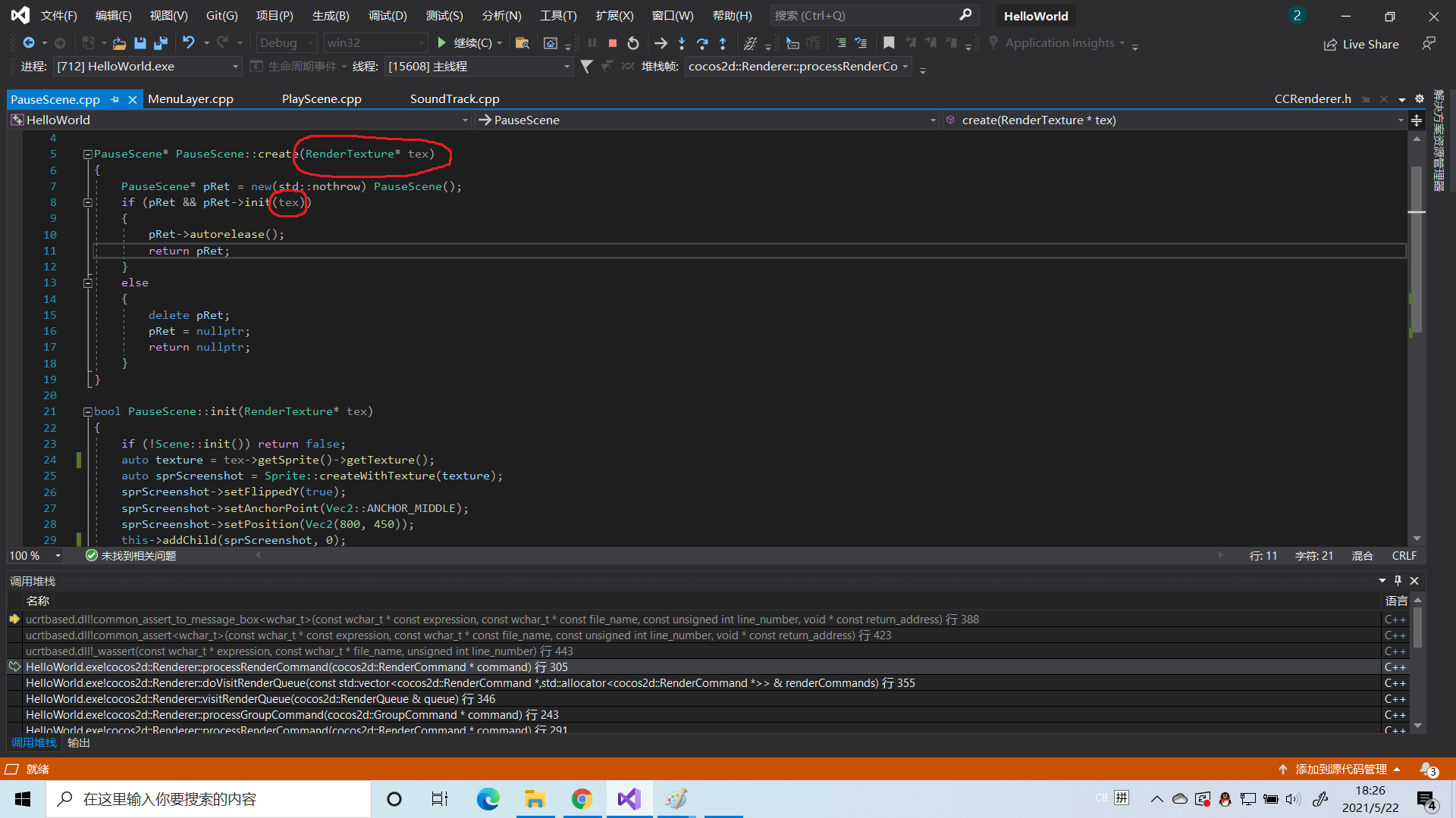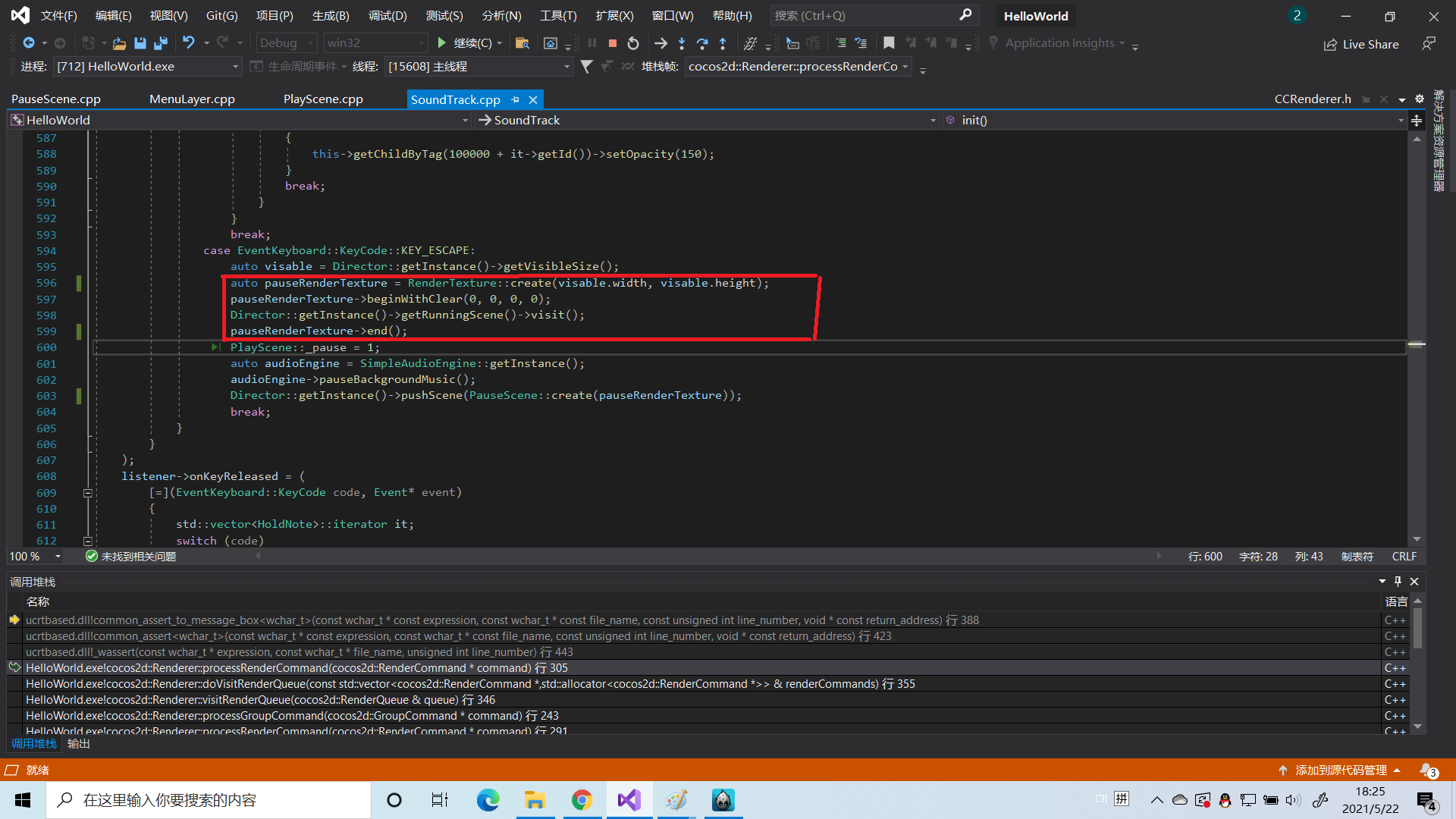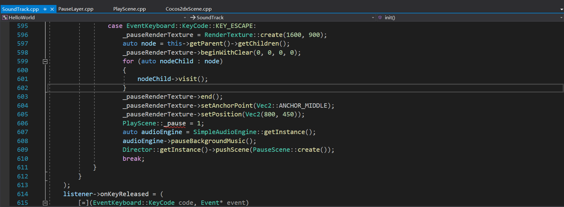 报错的代码段(红线是vs抽风了)功能是按下esc后切换场景