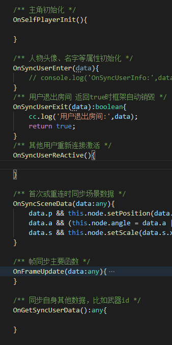 大致的同步方案为:框架只同步主角信息(角度,位置),由主角而产生的消息(比如说发子弹,换枪)等操作,均由自己发消息和分发。