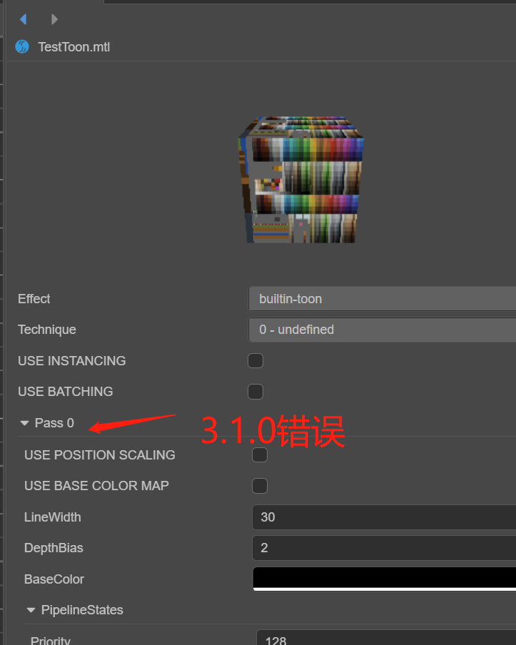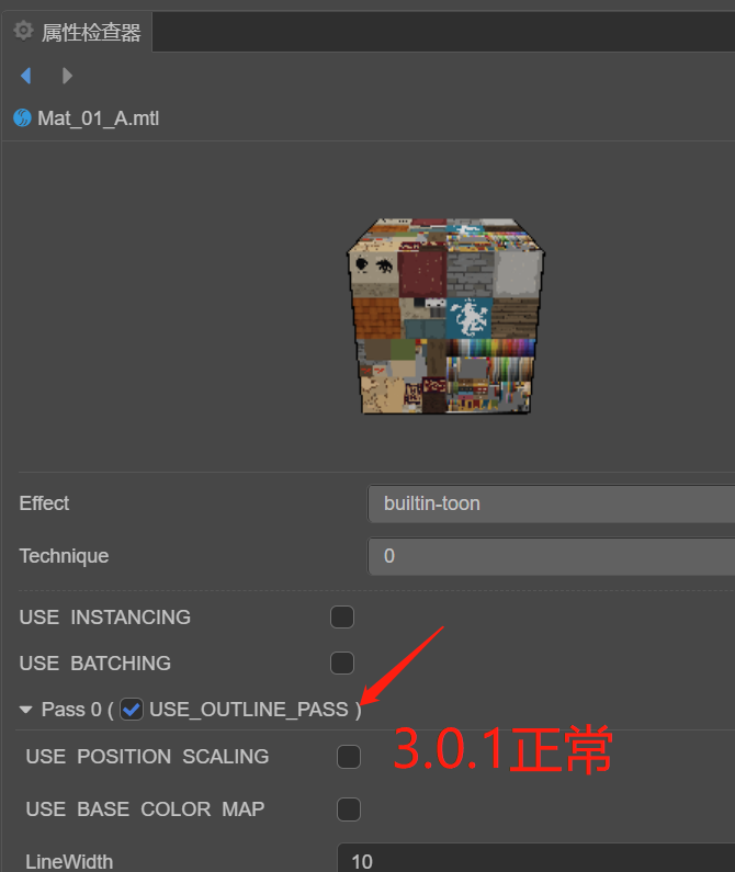 看上面三个截图,而且3.1.0的toon渲染就有问题,极度怀疑是多pass有bug。 demo就不需要提供了吧,这都是内置的effect