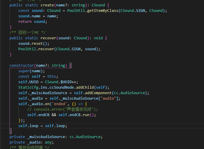 我下面图2的方法就是audioEngine的方法,我看到他添加就是赋值 this._finishCallback 然后 ended 事件调用的