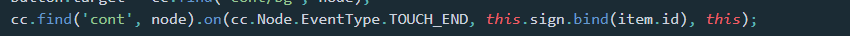 cc.find(‘cont’, node).on(cc.Node.EventType.TOUCH_END, this.sign.bind(this, item.id));