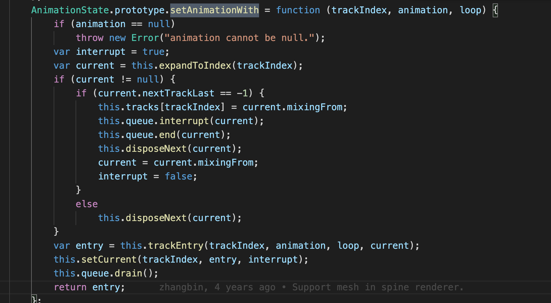spine.setAnimation(0, spineName, false);