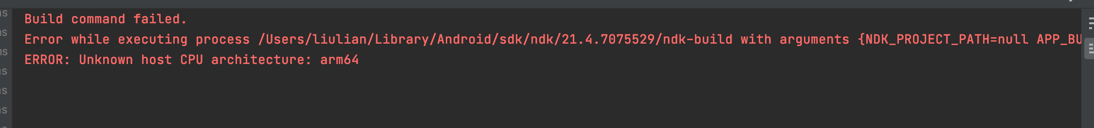 Error while executing process /Users/liulian/Library/Android/sdk/ndk/19.2.5345600/ndk-build with arguments {NDK_PROJECT_PATH=null APP_BUILD_SCRIPT=/Users/liulian/Downloads/NewProject/build/jsb-link/frameworks/runtime-src/proj.android-studio/game/jni/Android.mk NDK_APPLICATION_MK=/Users/liulian/Downloads/NewProject/build/jsb-link/frameworks/runtime-src/proj.android-studio/game/jni/Application.mk APP_ABI=armeabi-v7a NDK_ALL_ABIS=armeabi-v7a NDK_DEBUG=0 APP_PLATFORM=android-16 NDK_OUT=/Users/liulian/Downloads/NewProject/build/jsb-link/frameworks/runtime-src/proj.android-studio/game/build/intermediates/ndkBuild/feature/release/obj NDK_LIBS_OUT=/Users/liulian/Downloads/NewProject/build/jsb-link/frameworks/runtime-src/proj.android-studio/game/build/intermediates/ndkBuild/feature/release/lib NDK_TOOLCHAIN_VERSION=clang NDK_MODULE_PATH=/Applications/CocosCreator/Creator/2.4.5/CocosCreator.app/Contents/Resources/cocos2d-x:/Applications/CocosCreator/Creator/2.4.5/CocosCreator.app/Contents/Resources/cocos2d-x/cocos:/Applications/CocosCreator/Creator/2.4.5/CocosCreator.app/Contents/Resources/cocos2d-x/external -j8 NDK_DEBUG=0 APP_SHORT_COMMANDS=false LOCAL_SHORT_COMMANDS=false -B -n}