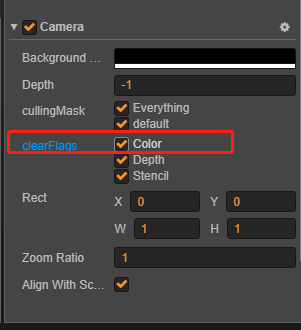 勾选后确实不花屏了,但是这个摄像机是用来渲染ui的。勾选后,另一个渲染游戏移动对象的摄像机渲染不出任何东西