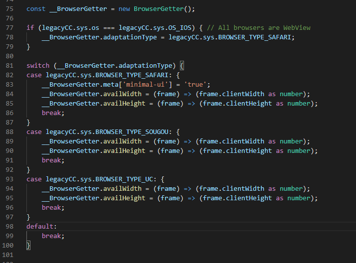 然后我们发现在引擎代码view.ts中,有对不同的浏览器做适配,安卓的浏览器中availWidth和availHeight只会返回浏览器显示界面的大小,并不会返回父div的大小。