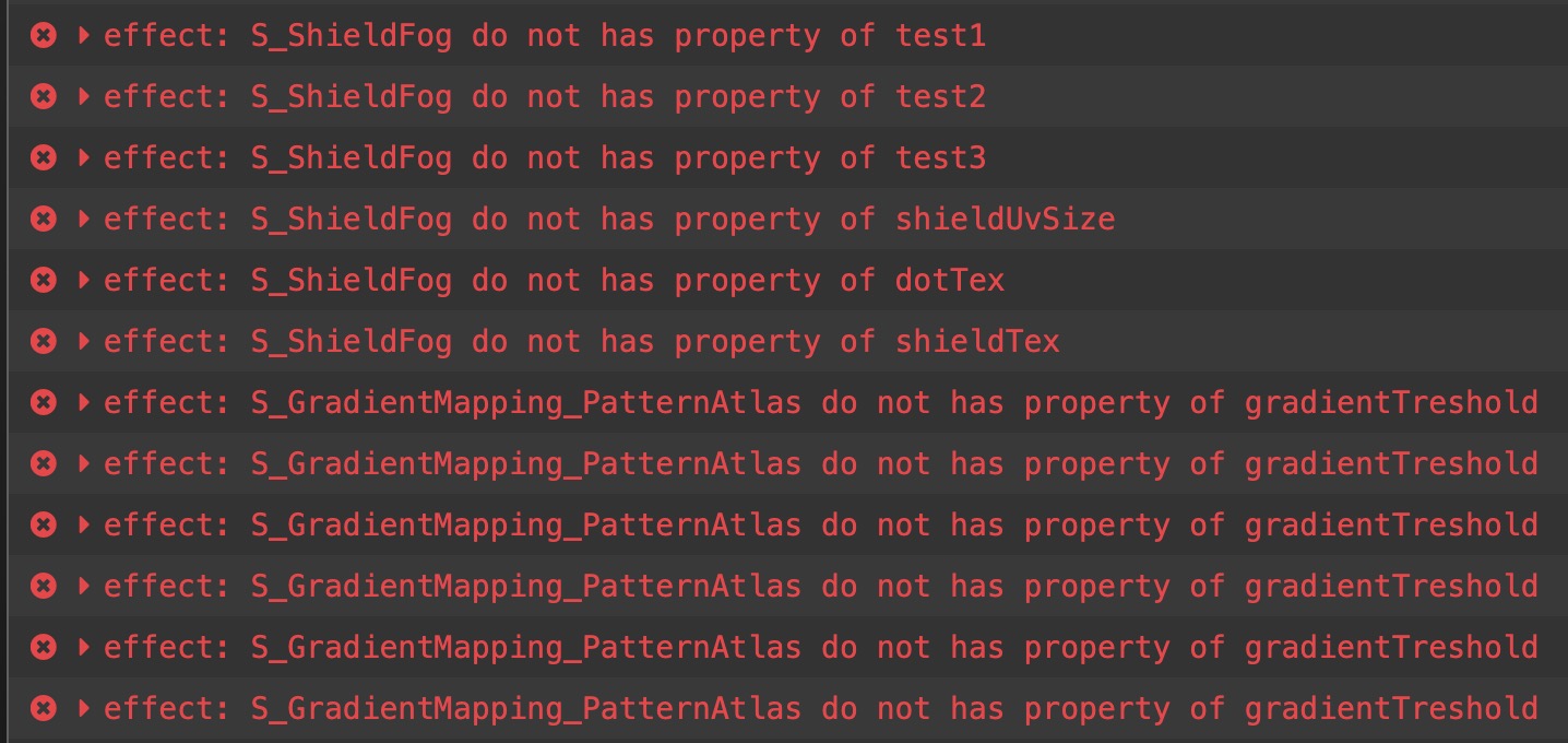 这个是因为effect文件变动,导致一些shader的属性丢失,你可以自定义引擎,修改这个文件的函数,重启编辑器就会打印出丢失的属性,手动移除material文件的数据。