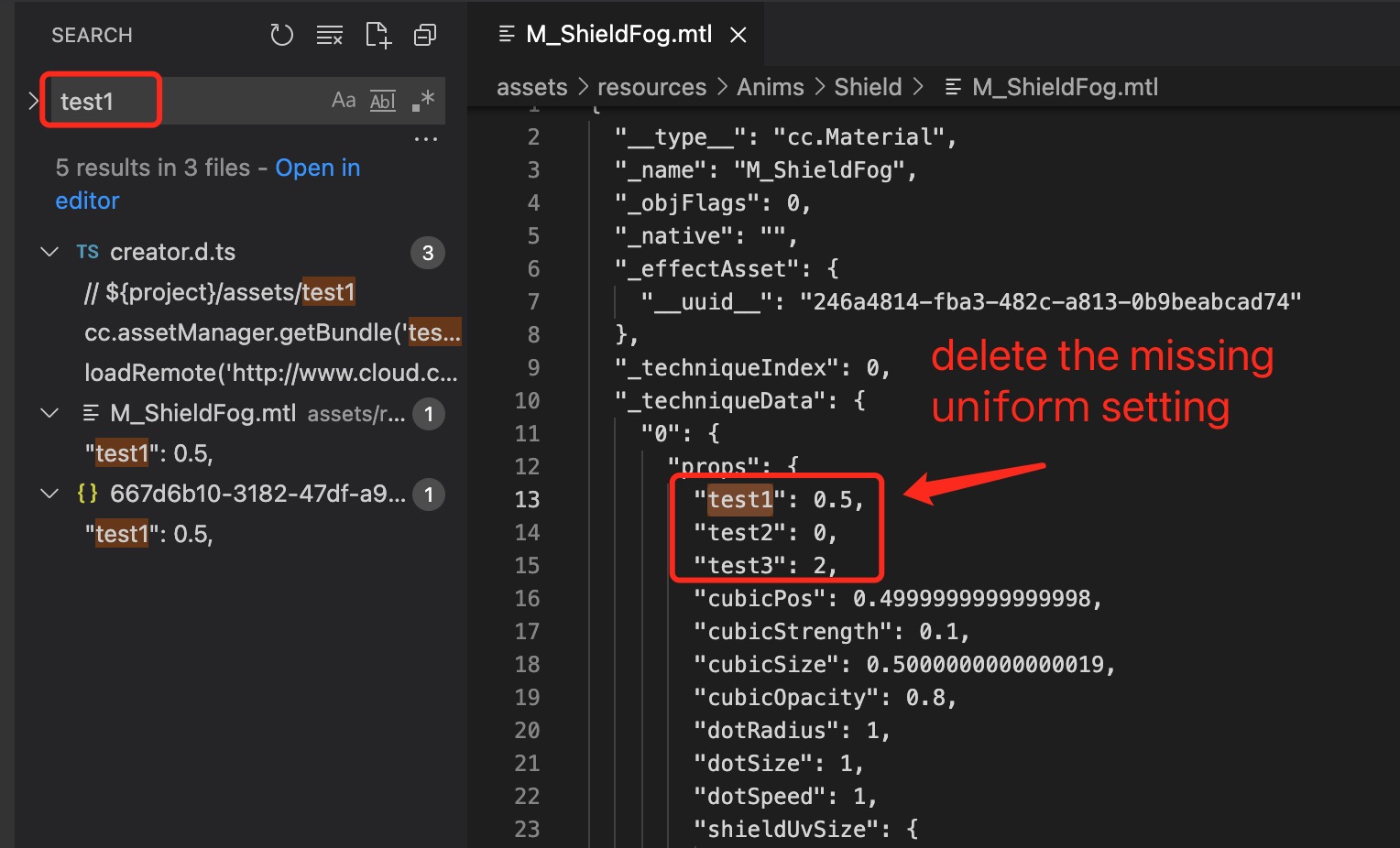 手动移除material文件中未定义属性