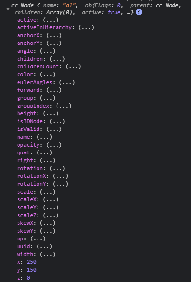 但是单独访问这个预设体的坐标, ‘cc.log(this.node.children[5].x);’ 访问到的不是250,而是0.如图:
