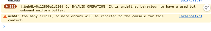 localhost/:1 WebGL: too many errors, no more errors will be reported to the console for this context.