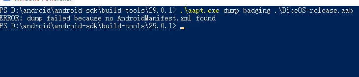 使用Cocos2.4.2打包安卓平台,生成一个apk和一个abb文件,将abb上传至Play Store,提示“dump failed because no AndroidManifest.xml found”。自己去dump了一下,也是同样的问题。
