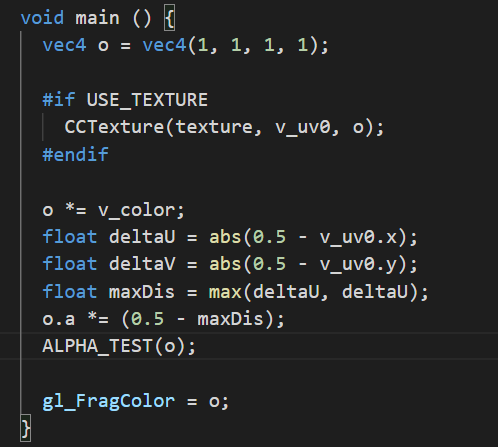 我是一个creator新手,求一个能使图片四周虚化的shader代码,那种中心向四周渐变透明的那种虚化,谢谢大佬们了