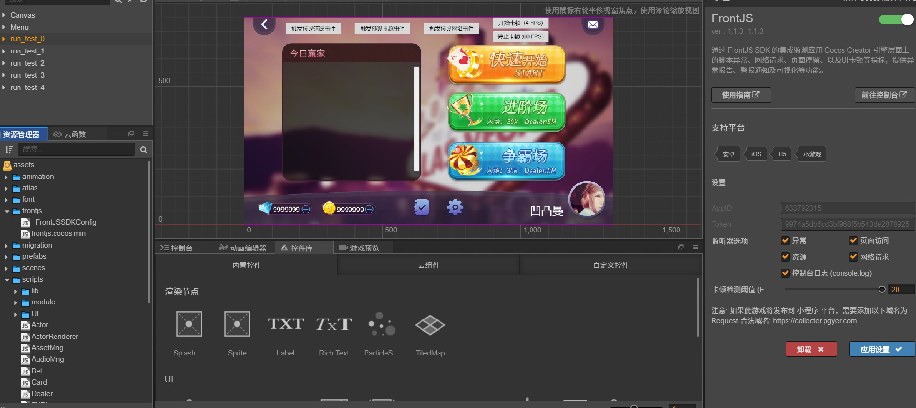 2. 我已经创建了这个游戏,也运行了上面的错误触发按钮,10分钟过去了,fontjs后台依然没错误统计