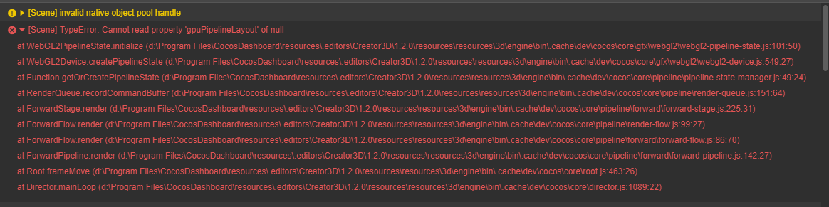 重现方式:目前目测是偶发的,偶尔出现在编辑shader并保存后,回到引擎时,出现该报错