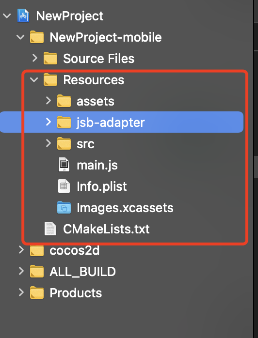 - 这时候会找不到assets、jsb-adapter、main.js、src 从新引用下就可以了