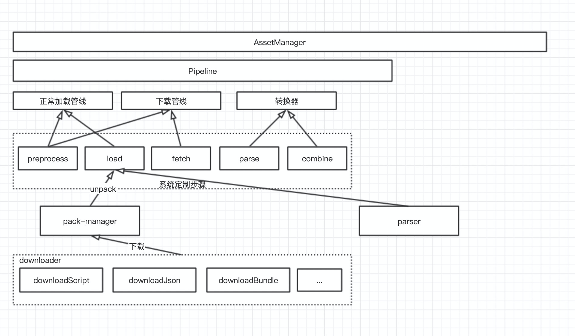 正常加载管线的load阶段包括解包(一般是一组资源如场景,预制件等)通过downloader内注册的方法下载不同的资源