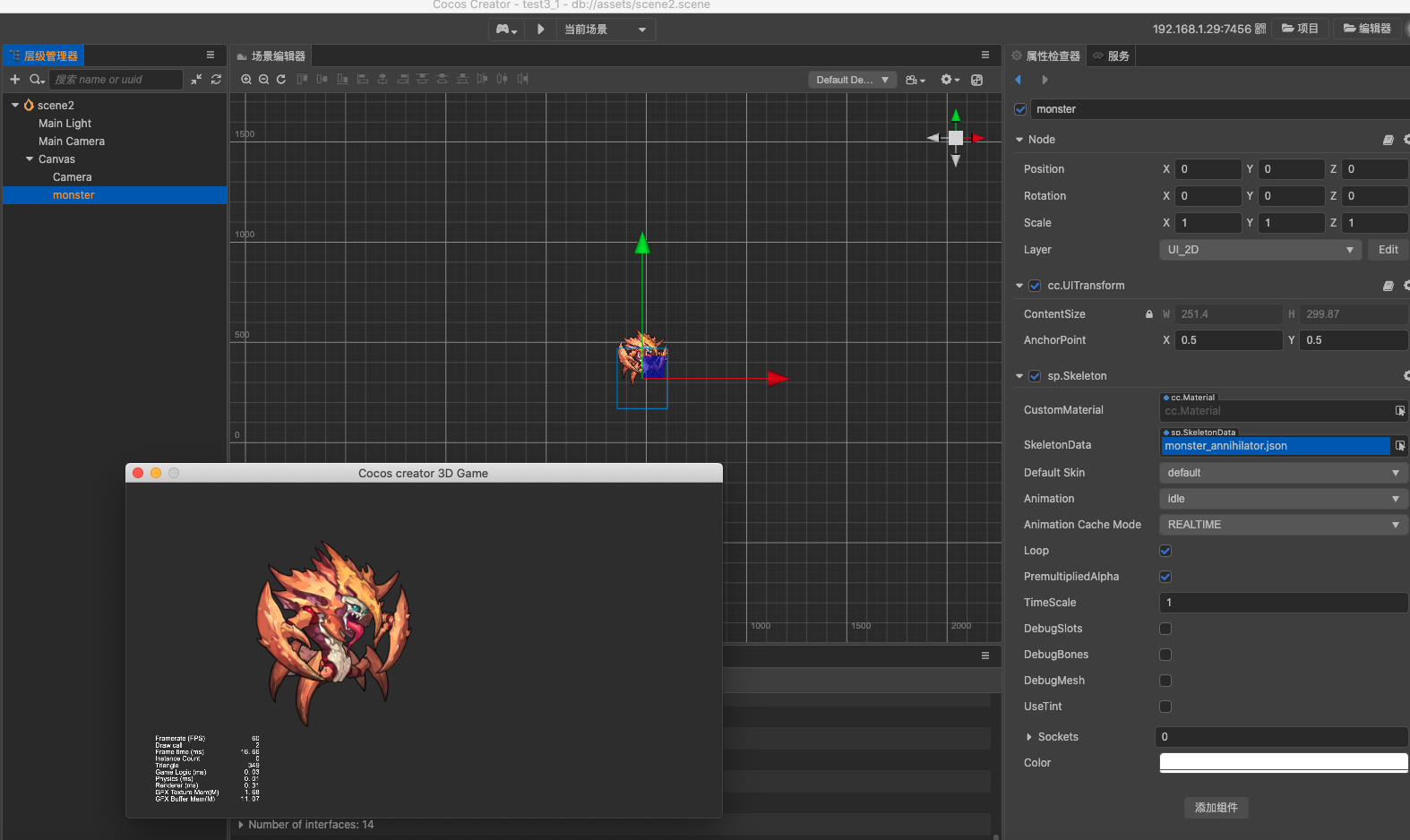 demo如同截图一样,直接就单纯放了个spine,连脚本都没有挂,直接模拟器运行位置就不对。而且我是用3.2来跑的。