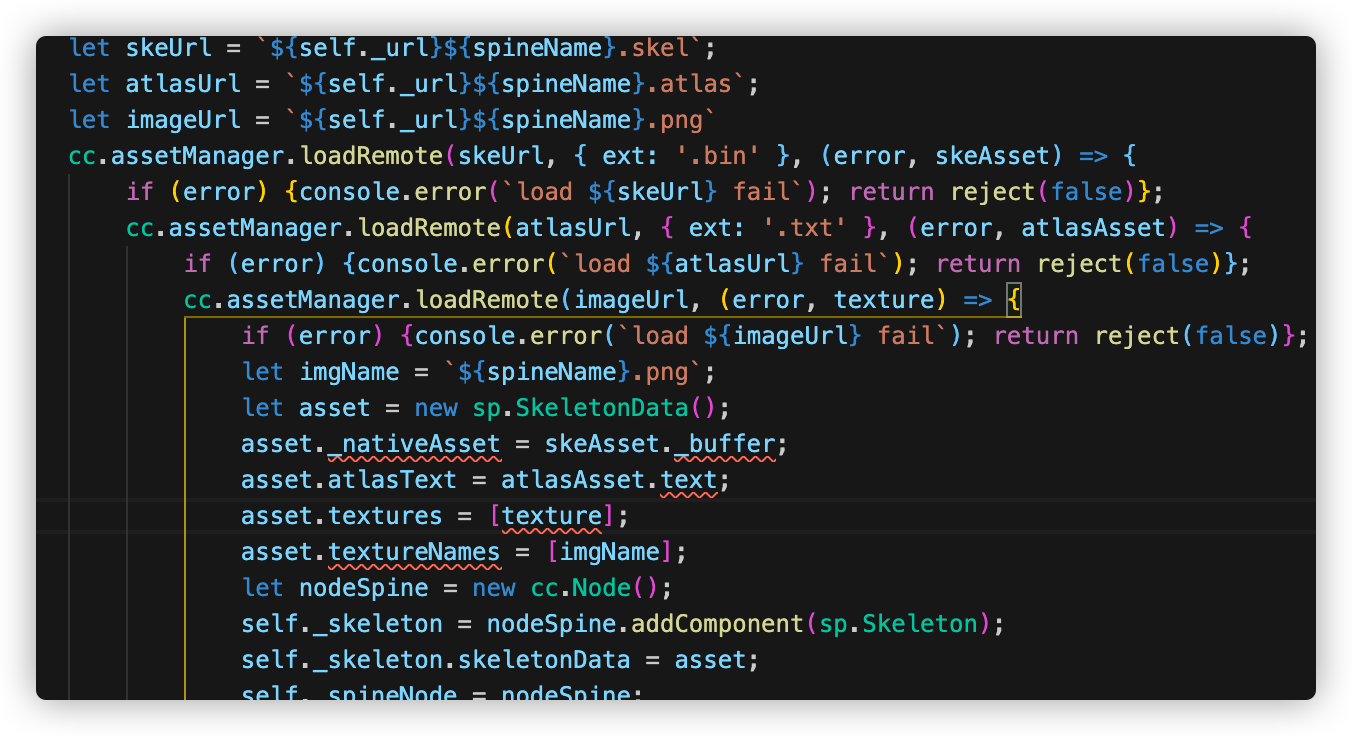 cc.assetManager.loadAny([{ url: atlas, ext: ‘.txt’ }, { url: ske, ext: ‘.bin’ }], (error, assets) => {