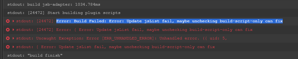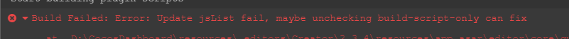 2021-07-15T02:35:16.560Z - error: Build Failed: Error: Update jsList fail, maybe unchecking build-script-only can fix