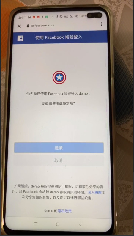 如果切换到其他app再切回来会跳出取消登入的提示。