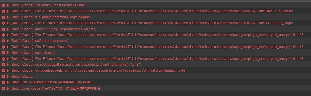 [Build] [Cocos]: File “E:\cocos\CocosDashboard\resources.editors\Creator3D\1.1.2\resources\resources\3d\cocos2d-x-lite\tools\cocos2d-console\bincocos.py”, line 937, in run_plugin