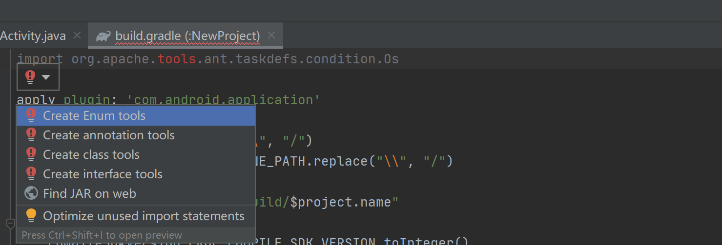 Execution failed for task ‘:NewProject:processDebugResources’.