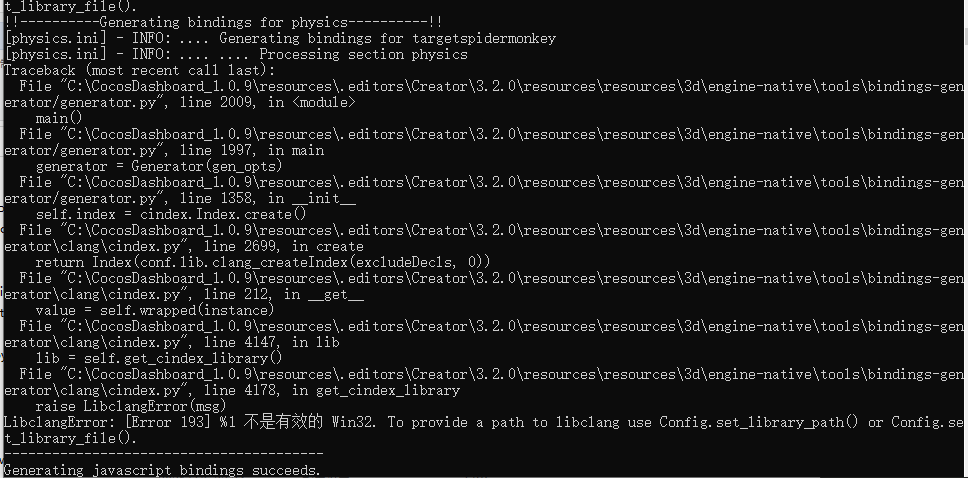 跑3.2的genbindings.py就提示我环境有问题