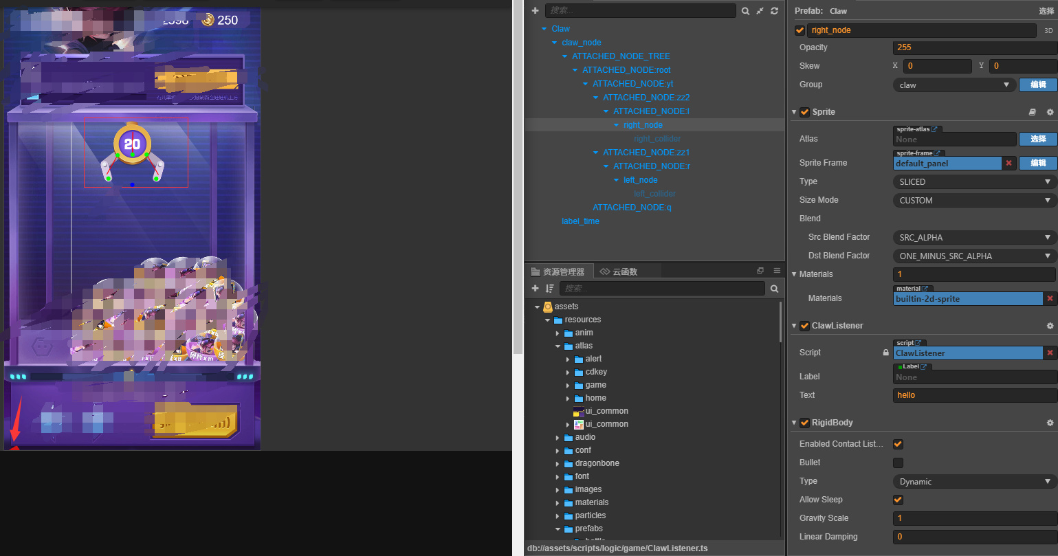 在挂点上面绑定的子节点,并在子节点下添加物理引擎的碰撞器组件,会出现挂点下的子节点偏移