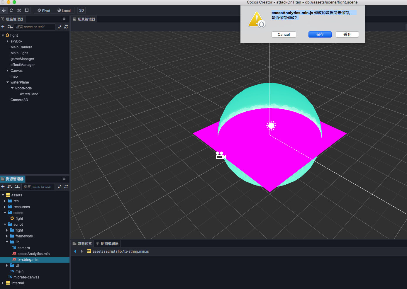 重现方式:资源管理器放置 xxx.min.js 文件点击该文件后再点其它文件会弹出提示框内容如下:“cocosAnalytics.min.js 修改的数据尚未保存,是否保存修改?”