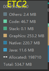 为了减少内存占用。把项目的图片格式做了etc2压缩。同账号同场景下内存占用对比如图。
