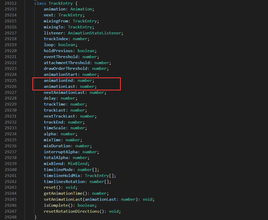 let entry: sp.spine.TrackEntry; let sp: sp.Skeleton; entry= sp.setAnimation(); entry.animationStart=0.1; entry.animationEnd=1;