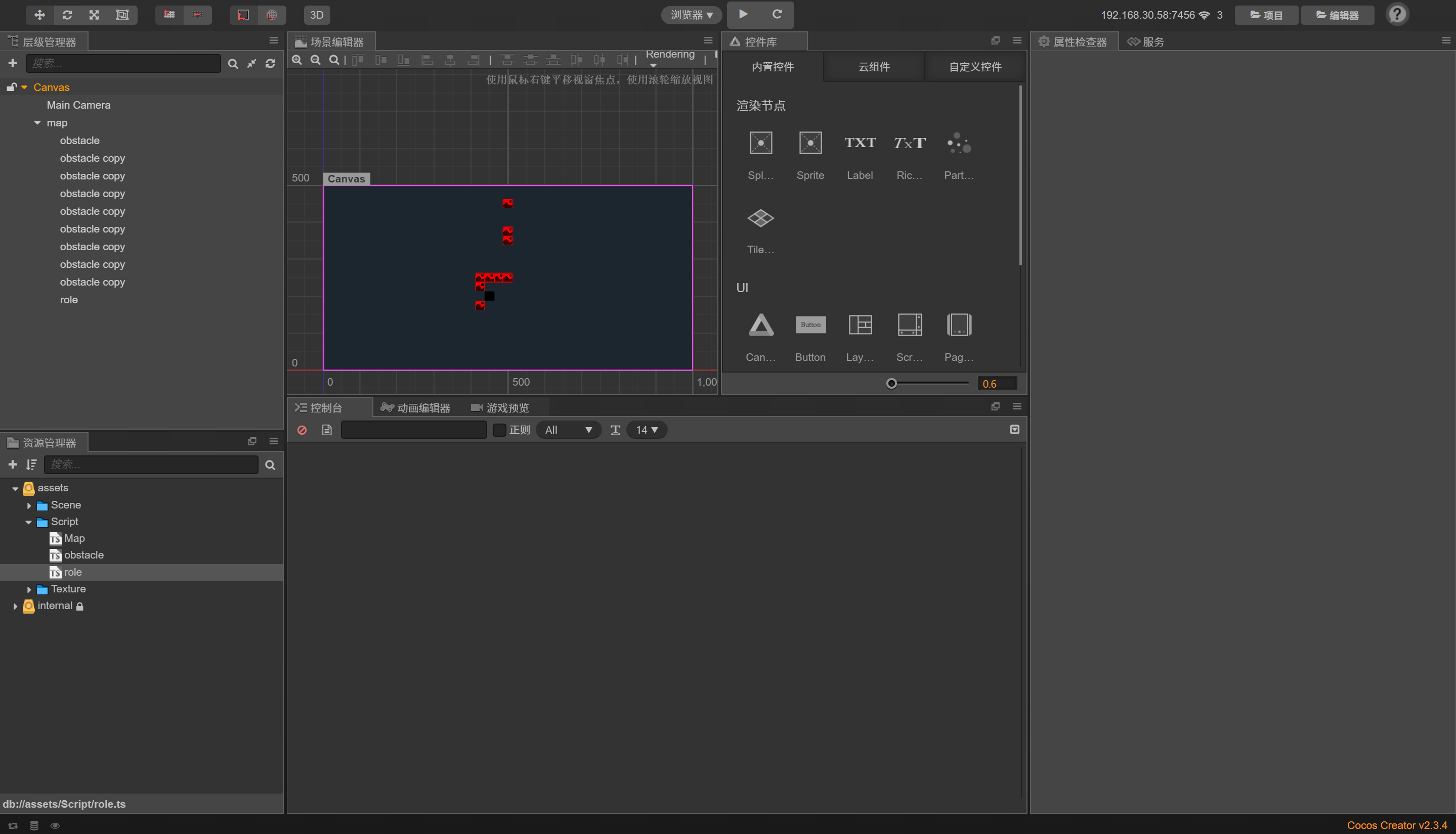 新建三个脚本文件role.ts Map.ts obstacle.ts
