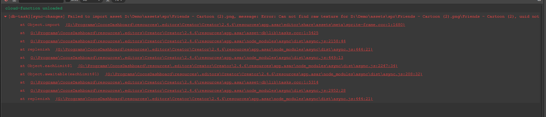 重现方式:在文件夹中将图片名称“btn (1).png”这样的形式,切回编辑器必定卡死