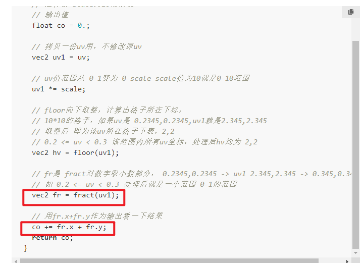 0,2 * 10 再取余,就把2整走做格子的坐标了,剩下的小数部分作为各自内的uv