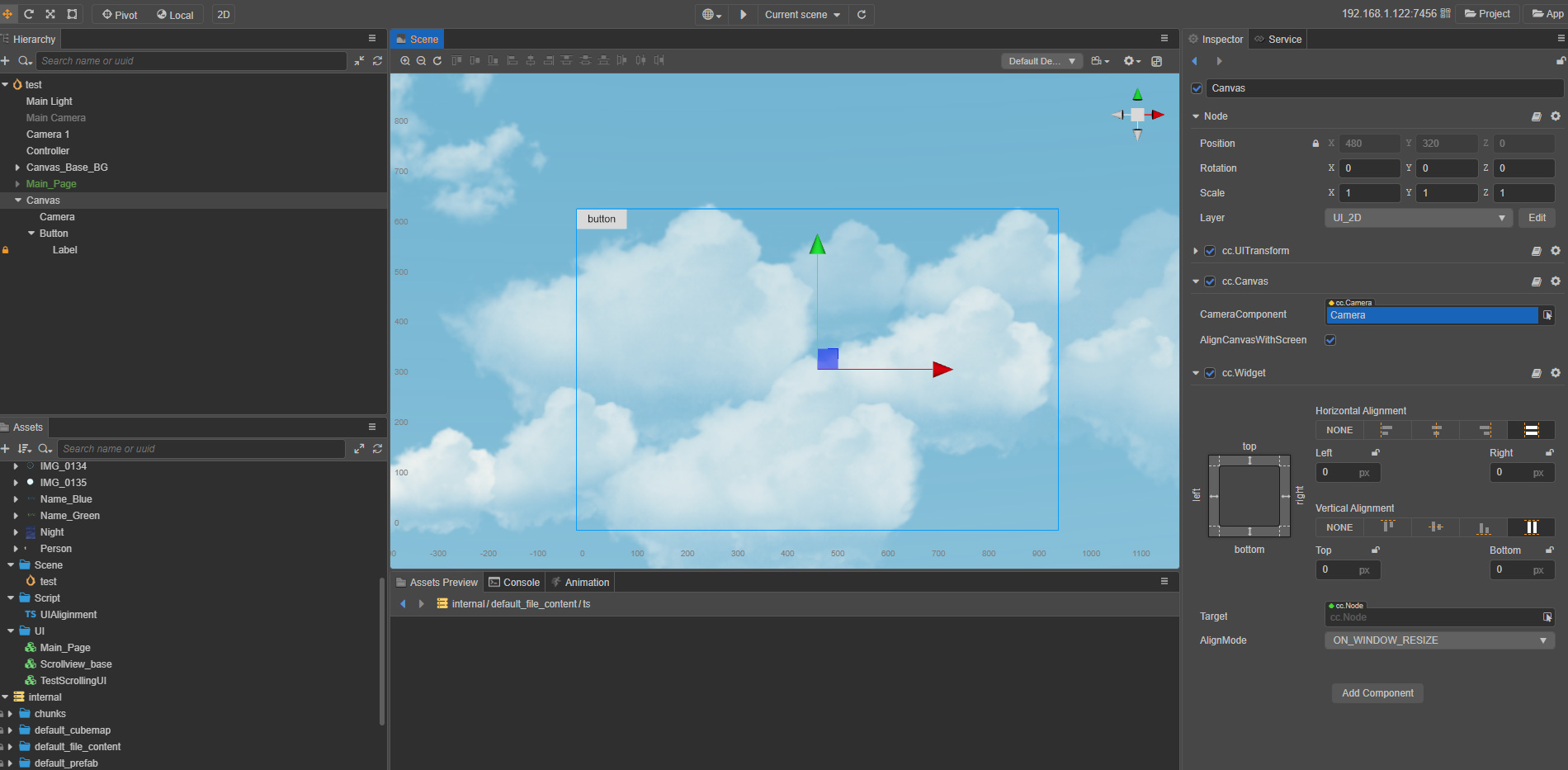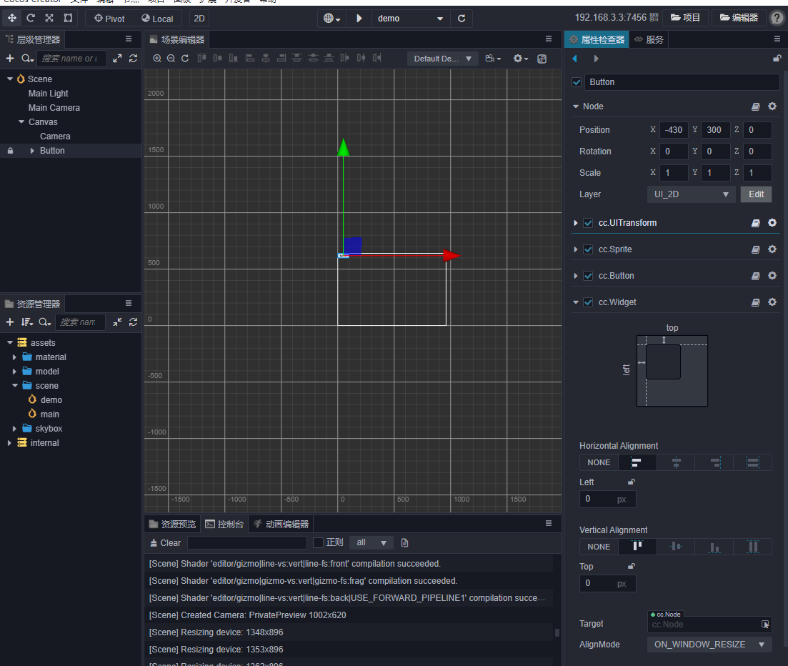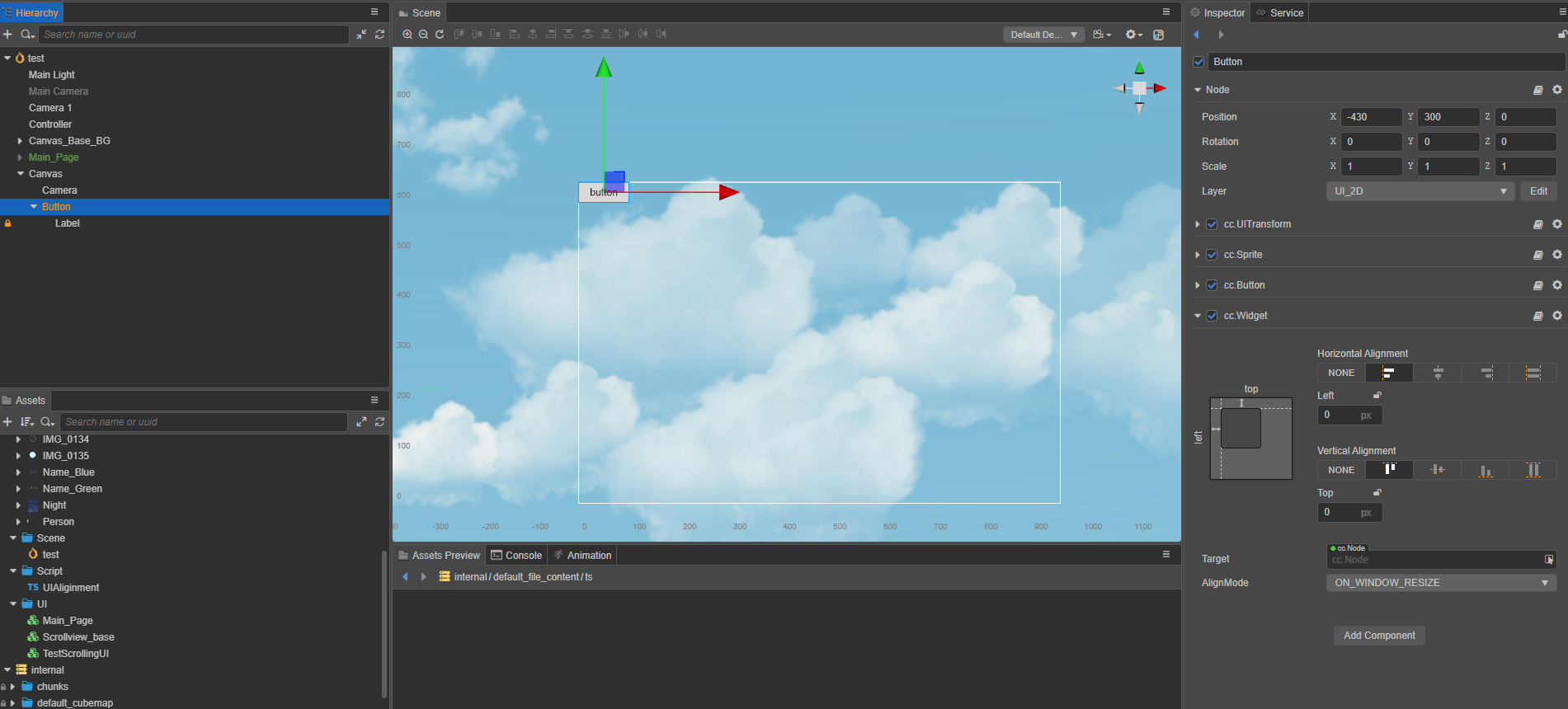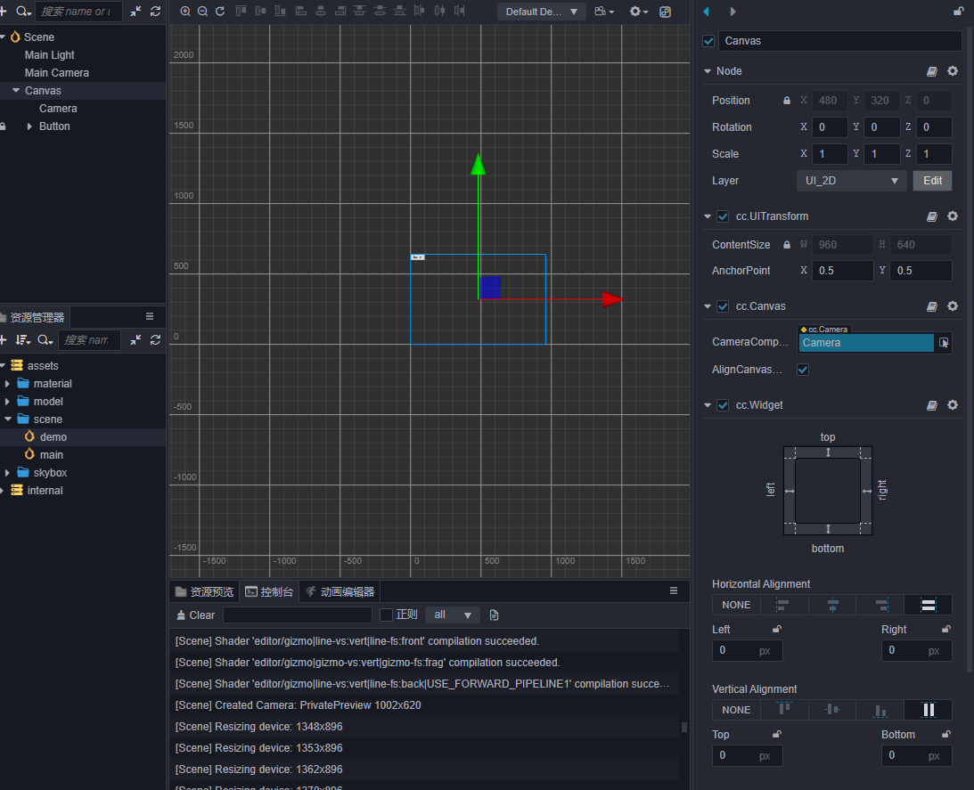 非canvas下的节点widget是不会生效的,只是有个位置,camera只是决定了视窗大小,不会做屏幕的大小适配来调整节点位置,canvas才具有适配的功能,widgets是ui组建,必须保证是在canvas的子节点中视频才会生效