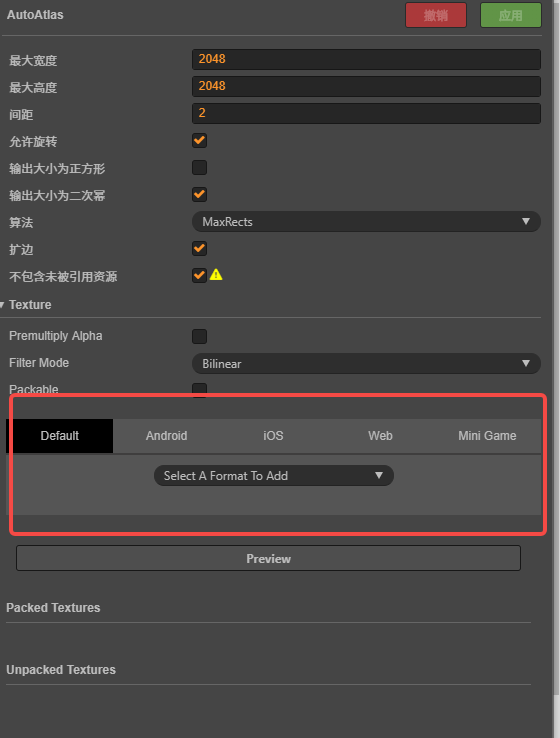 文件夹里创建一个自动图集配置,对自动图集配置进行操作