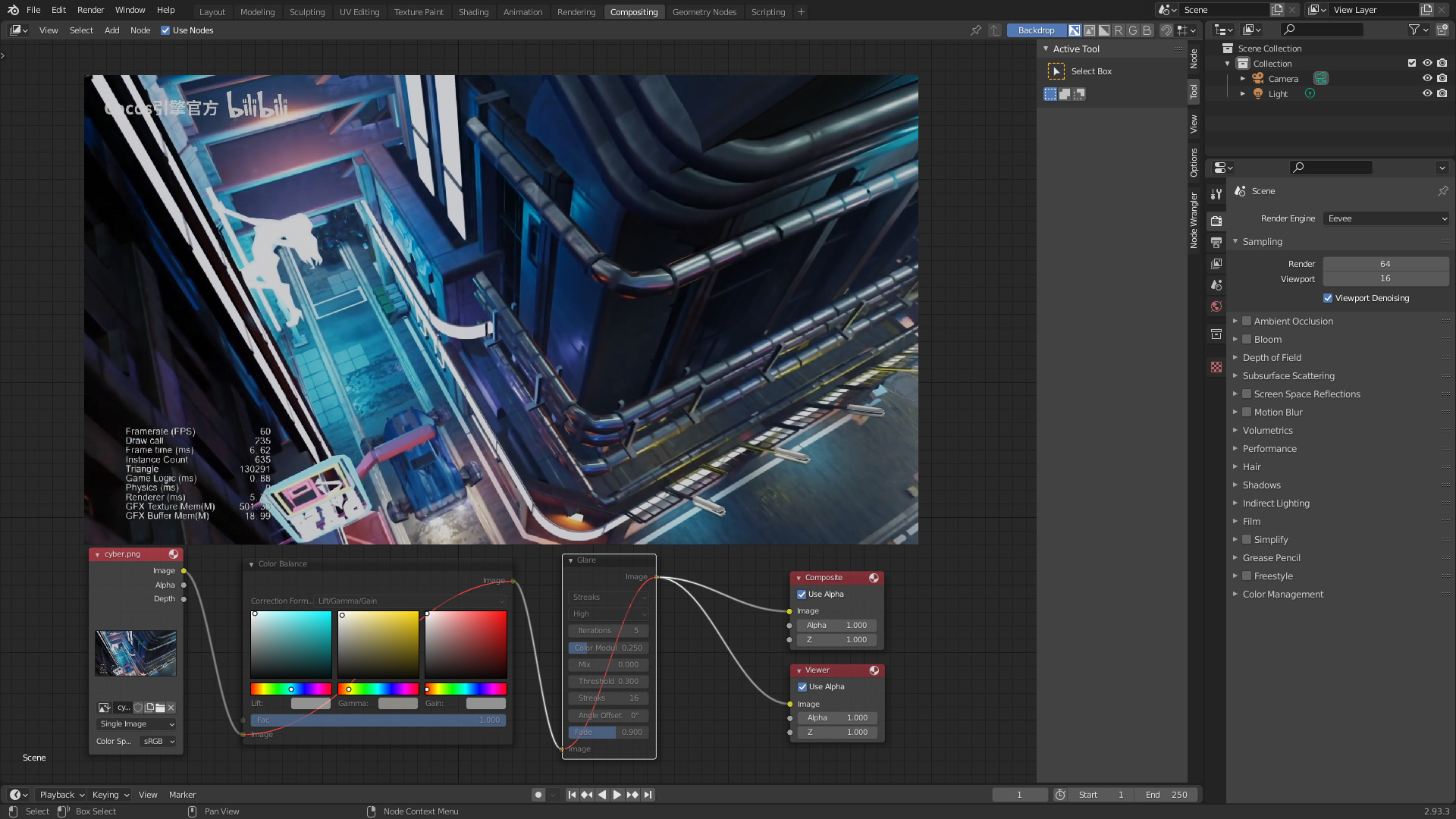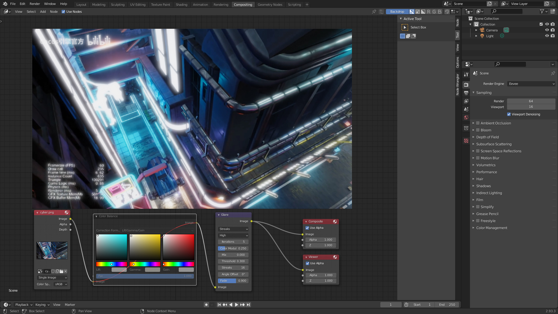,就截图顺手放到blender里用后效处理下看看什么样。