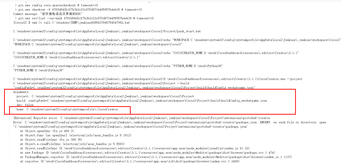 你可以看一下构建插件的文档,加一个构建插件,在里面打印一下 Editor.App.home 这个路径,怀疑你手动命令行构建和用 jenkins 打开编辑器的系统用户账号不同,用户目录不同导致配置目录不同。