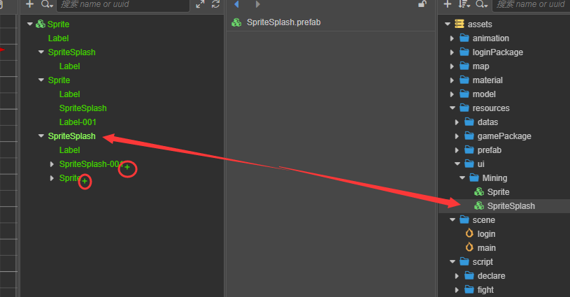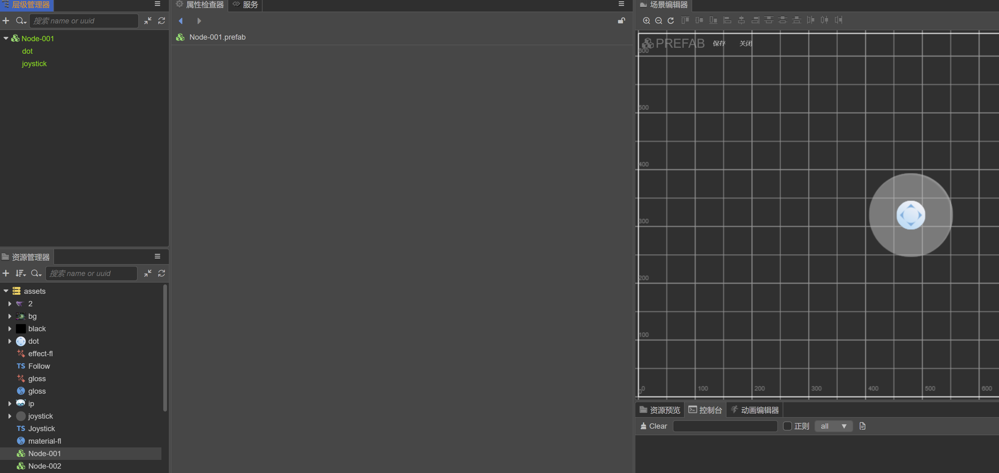 Node-001 Prefab里面有两个节点 copy其中一个 去Node-002 ctrl+v
