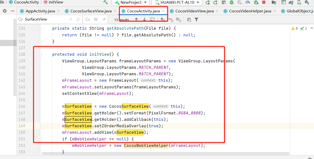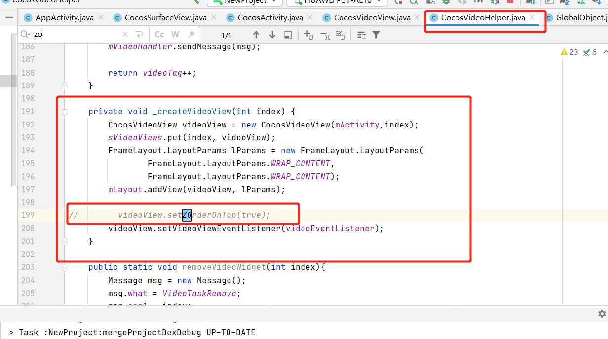 AppActivity.java里设置如下,并在Cocos2dxVideoHelper注释setZOrderOnTop,但现在AppActivity没有这些,整个GLSurfaceView,都弃用了