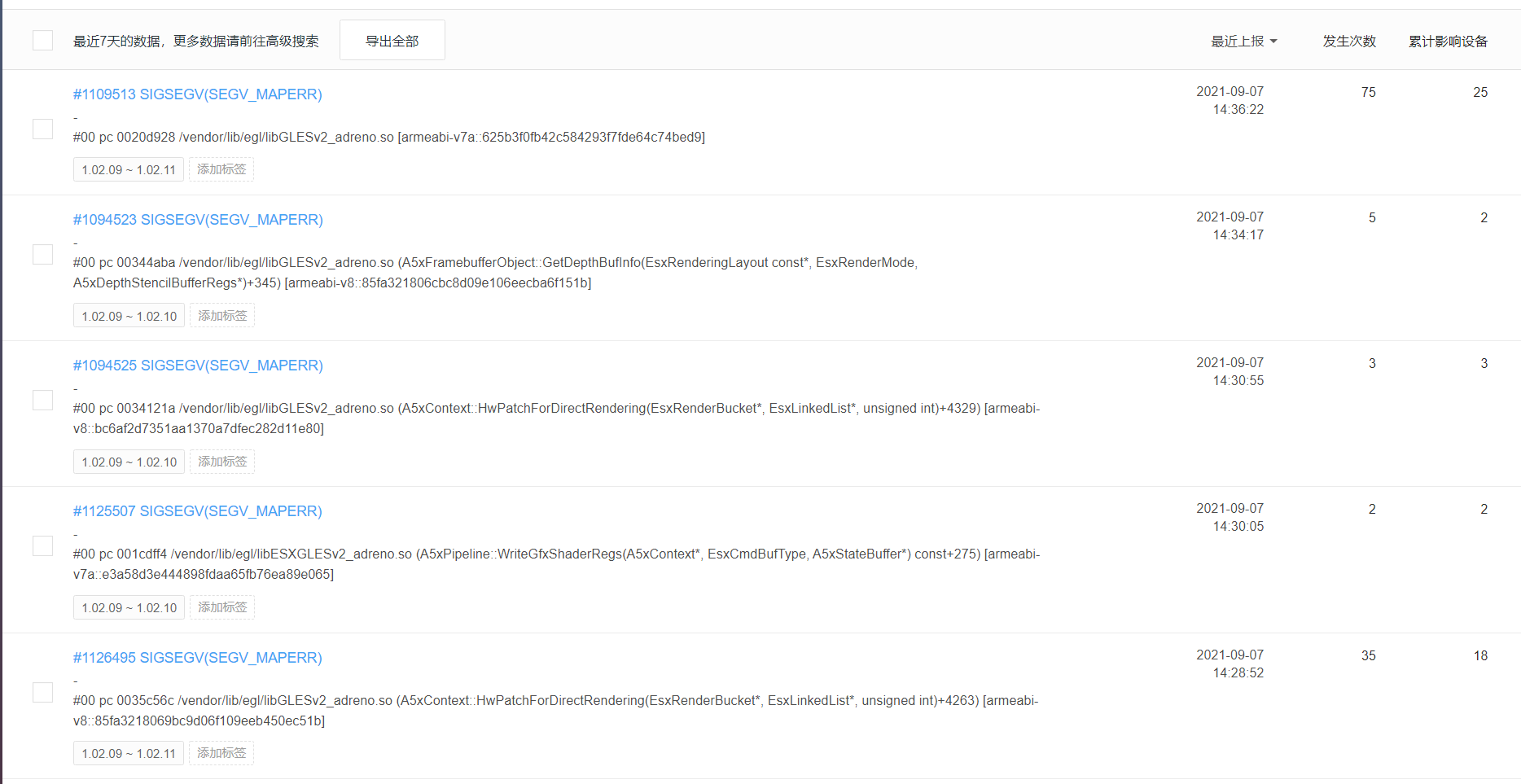 最近项目上线测试,结果闪退概率惊人,几乎全是这个堆栈,看堆栈是引擎调用了gl渲染代码,然后底层库崩溃,麻烦引擎组的大佬帮忙看看!!