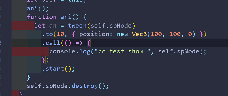 如图,在ani()中使用tween在destory之前就调用ani(),运行发现ani()的call不会有输出(这是肯定的)。