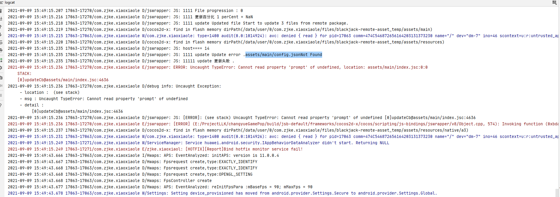 在杀掉进程第二次打开游戏的时候能正常更新。有哪位大佬知道第一次更新assets/main/config.jsonNot Found 这个是什么问题么.